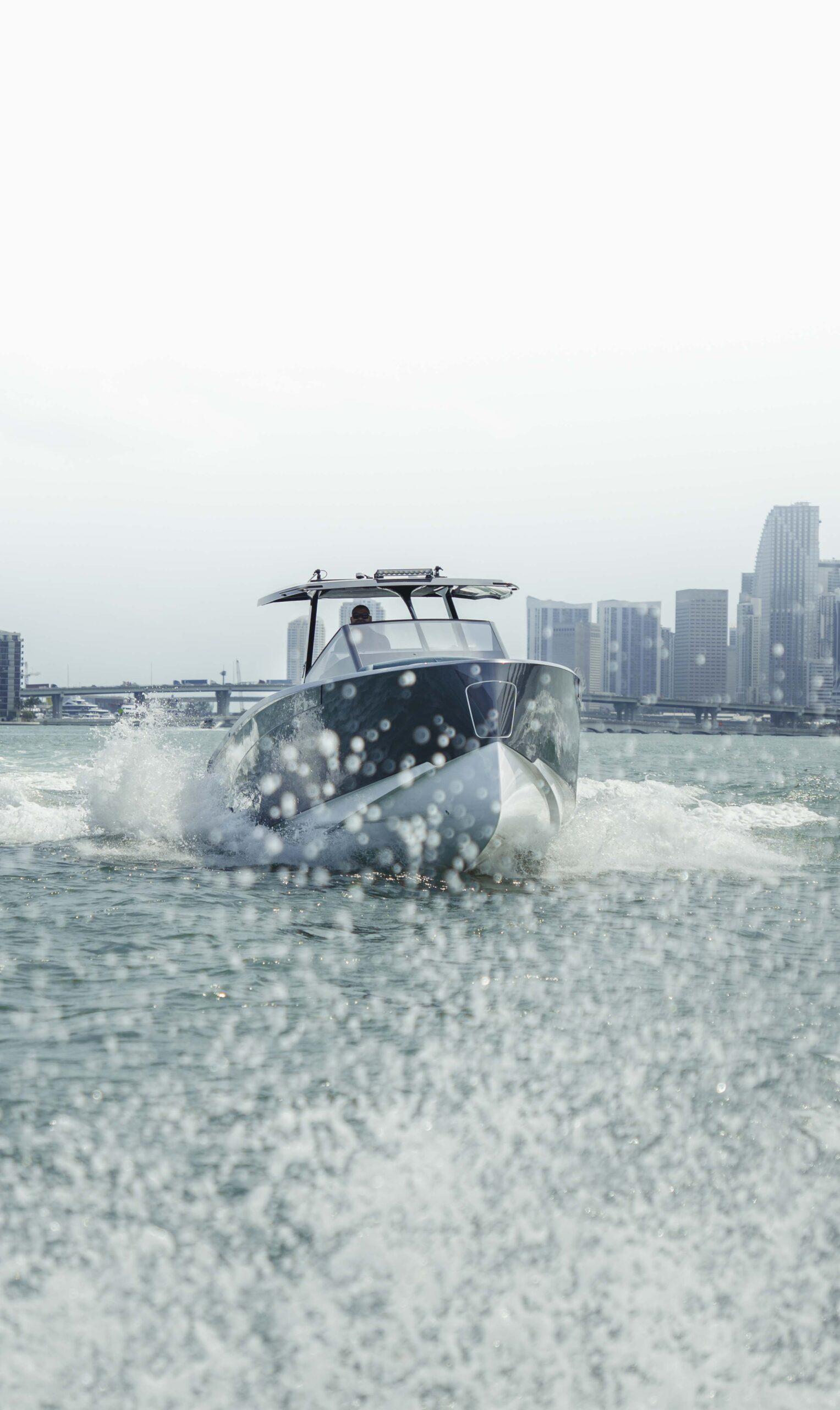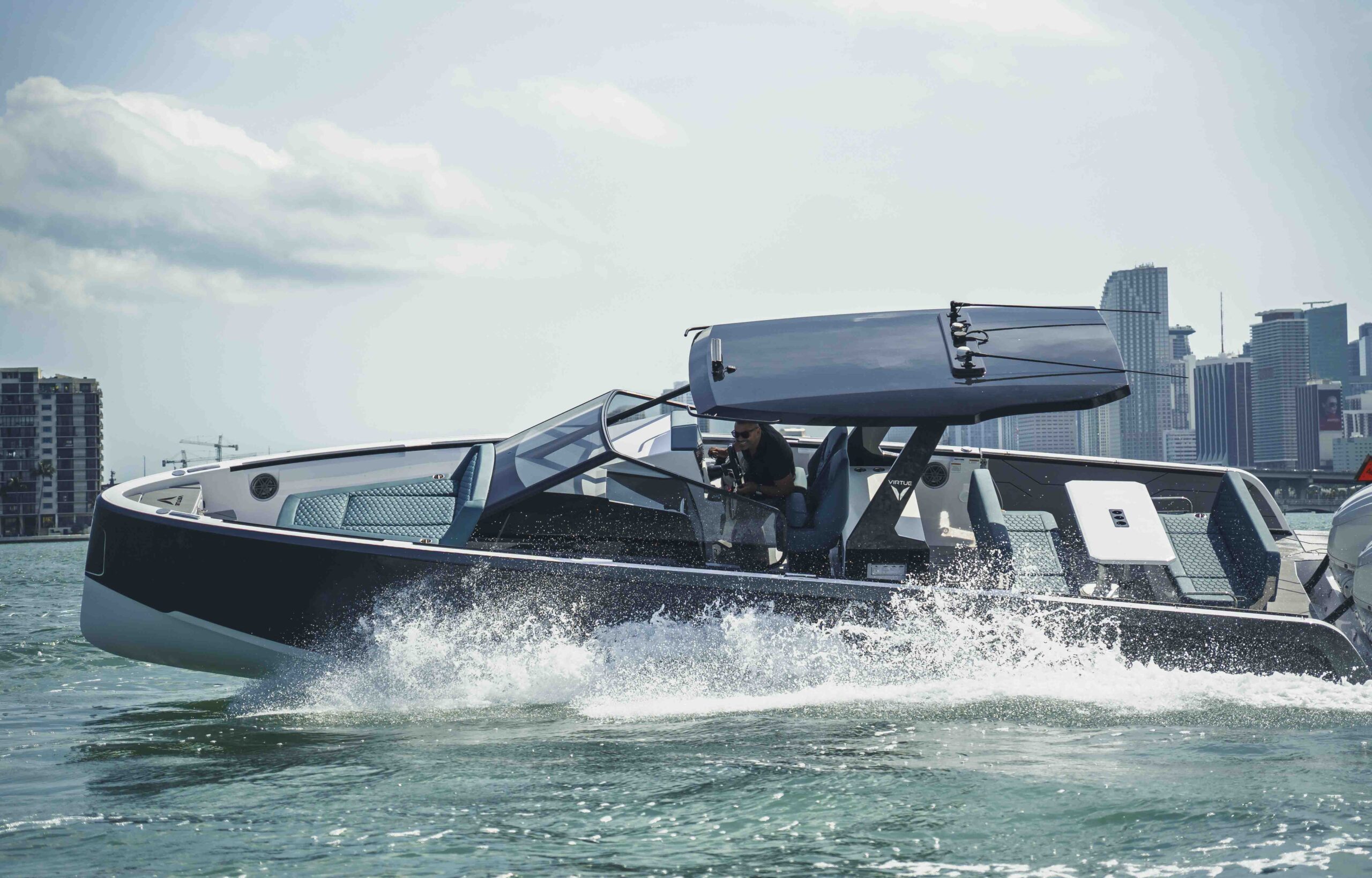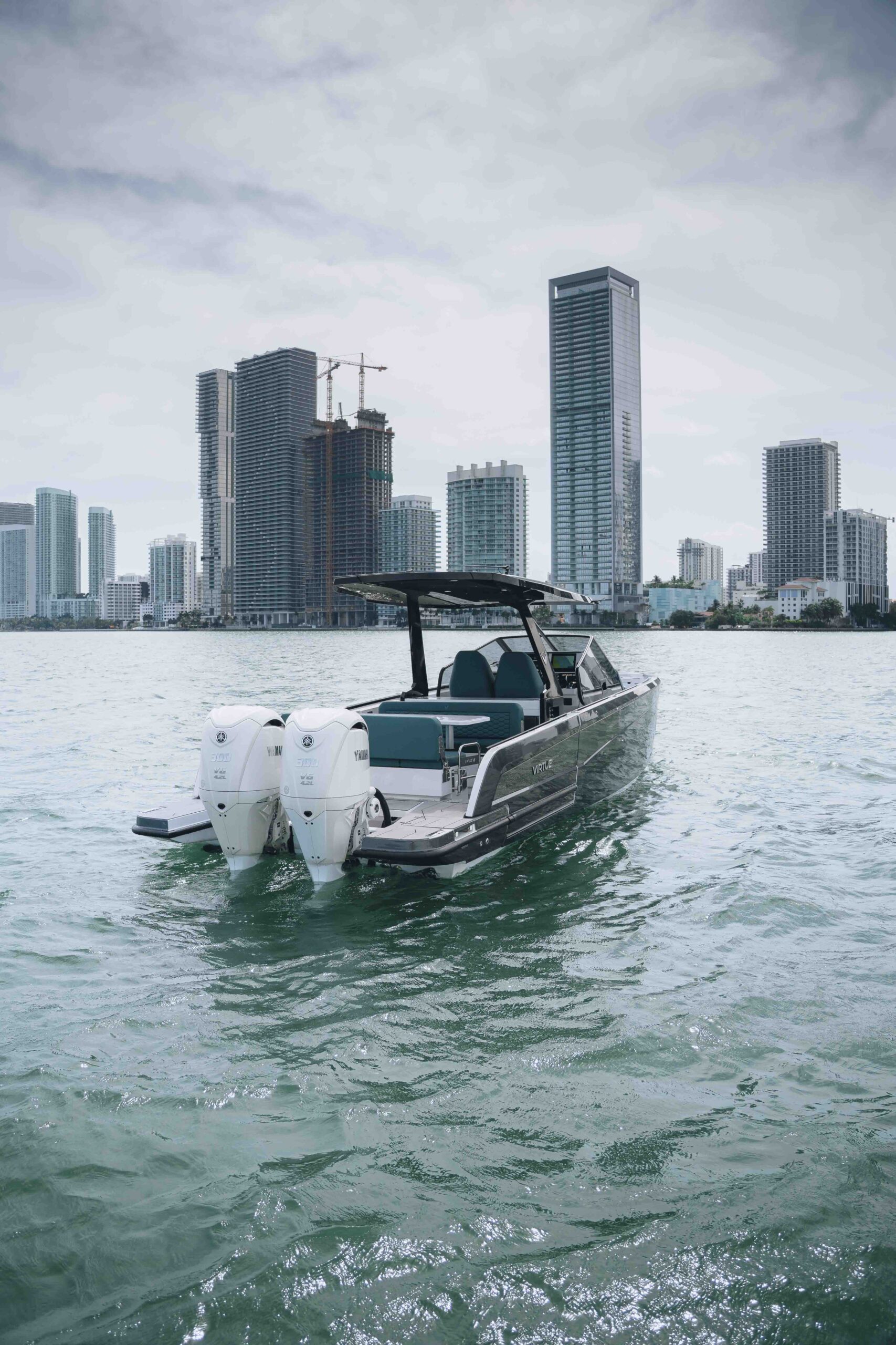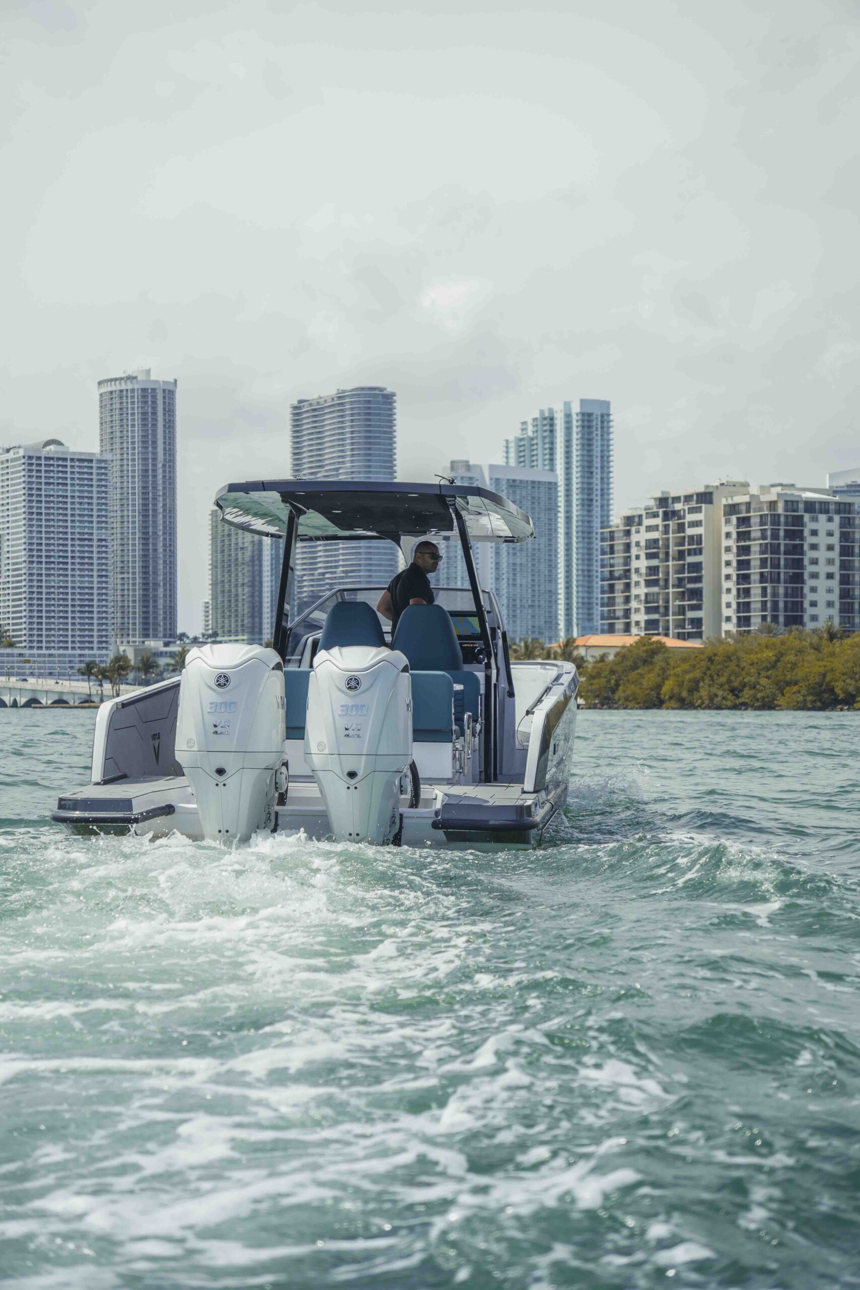 Super-efficient hull with the option of up to 600 horsepower on the transom is giving you the feeling of driving a race boat with a top speed of 60 knots/109 km per hour. She has a sporty character with bright colour combinations giving a perfect boat for fun at speed.
