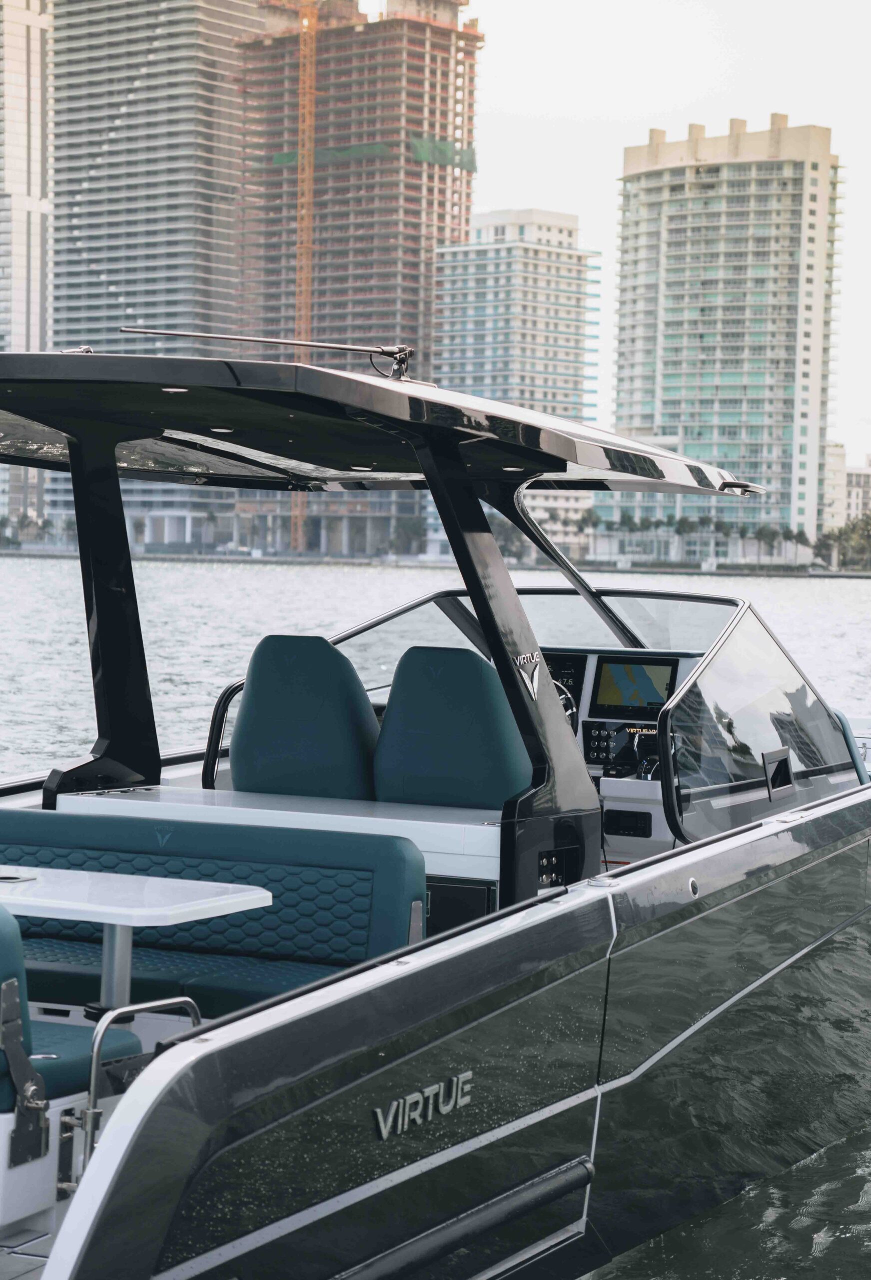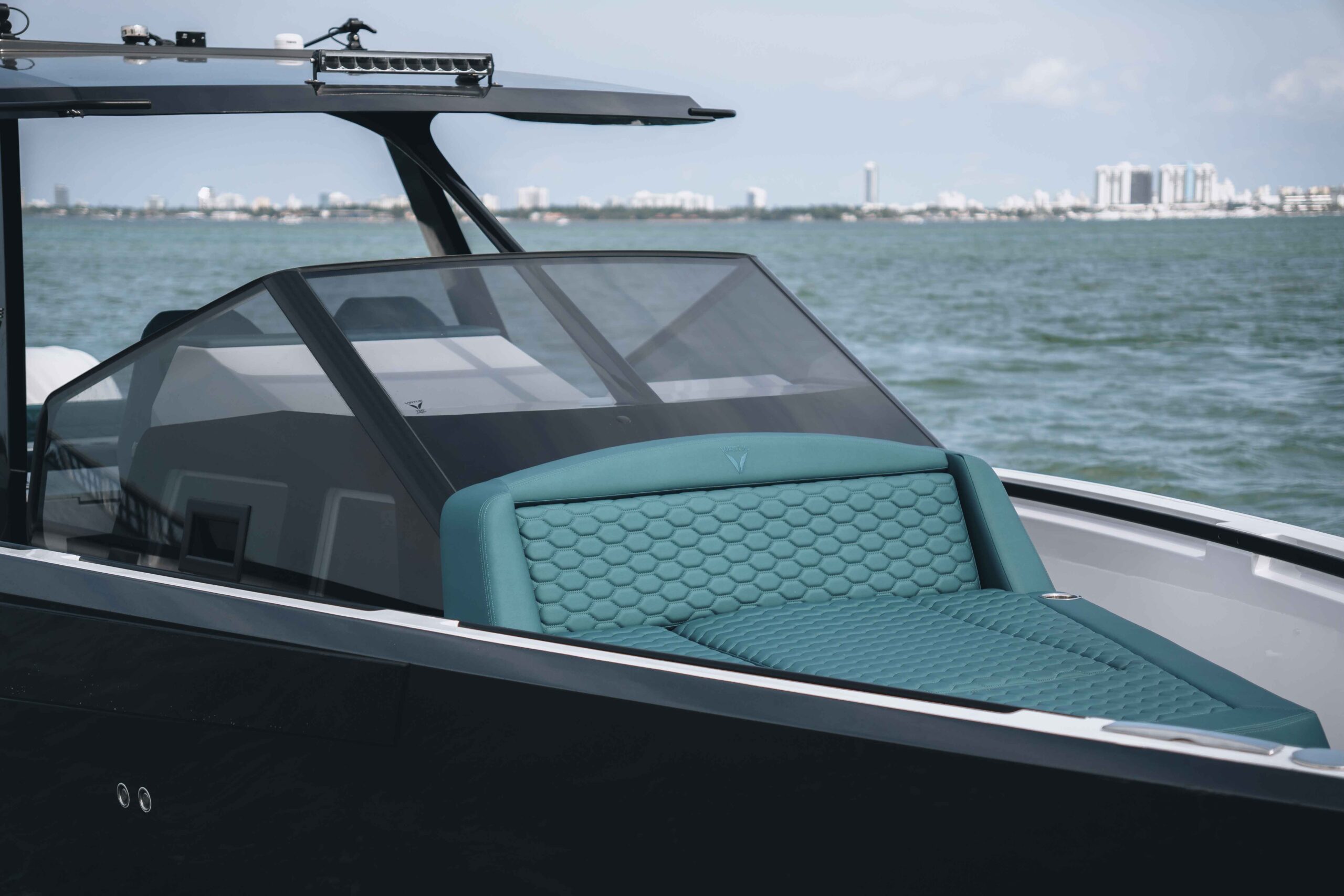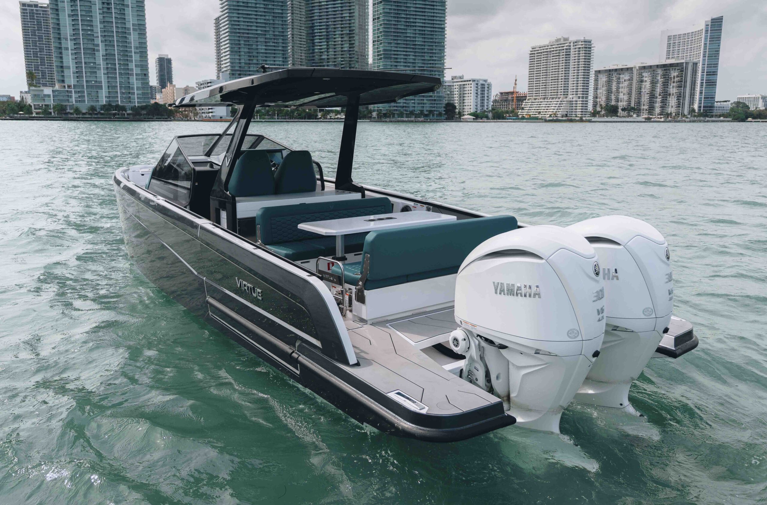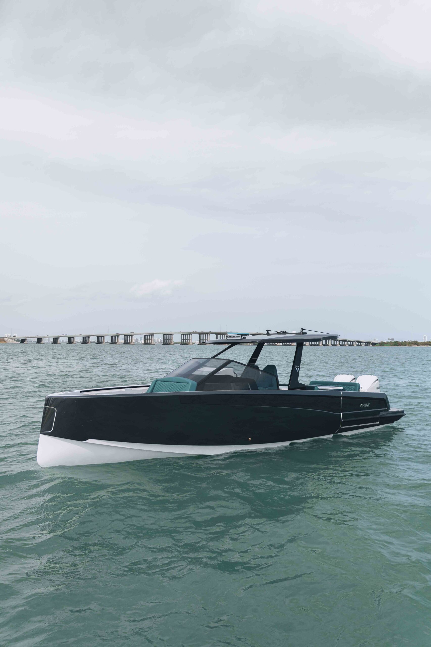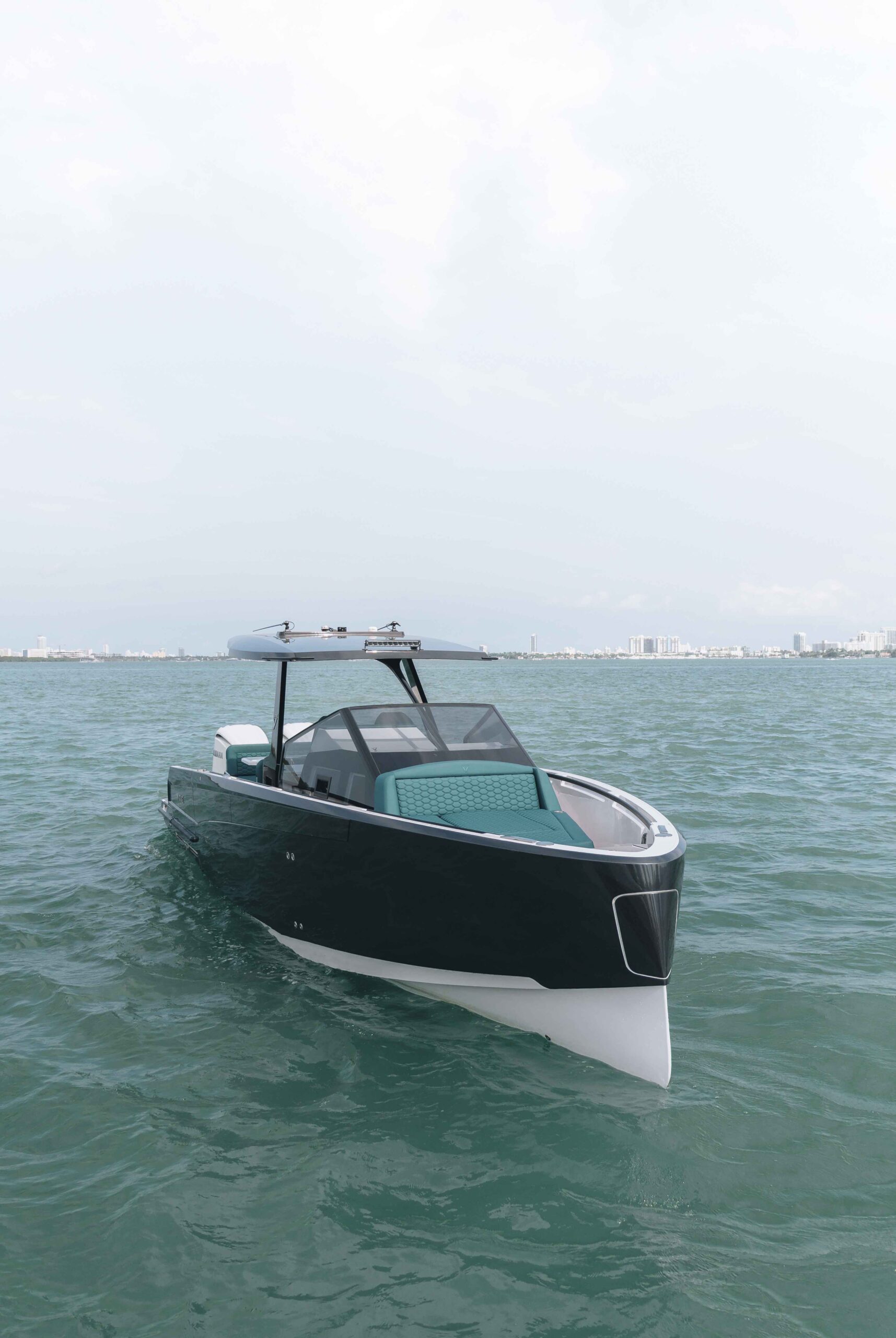 Super-efficient hull with the option of up to 600 horsepower on the transom is giving you the feeling of driving a race boat with a top speed of 60 knots/109 km per hour. She has a sporty character with bright colour combinations giving a perfect boat for fun at speed.