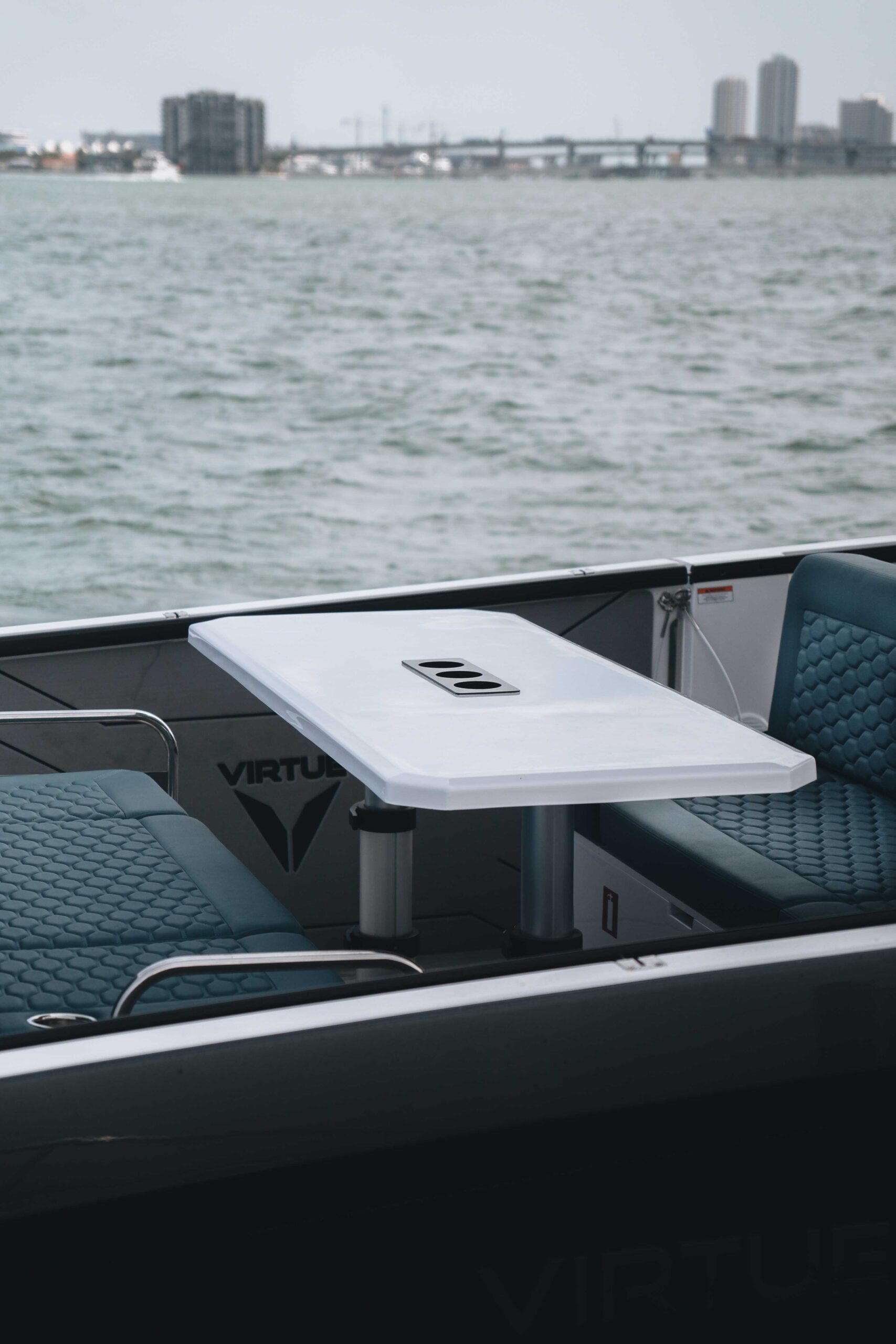 - adaptable aft area, convertible between sunbed, passenger benches and dining area